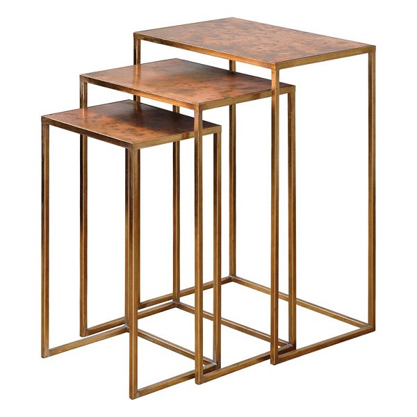 Sporting sturdy, wooden tabletops on tapering legs, this set of three nesting tables come in a dark walnut finish. 4.6 out of 5 stars. Three cast aluminum tables nestle in or drift out to create an organic resting place for drinks, books and greens. Juniper 20.5 gold 21.5 in. These 3 piece nesting tables have a contemporary design to complement your retail shop as they show off your merchandising. Height x width x depth 20 3/4x20 3/4x13 3/4 19 1/2x17 1/2x11 1/2 18 1/4x13 1/4x9 1/4 Stylewell cedar springs rectangular sable brown finish wood 2 drawer console table (47.48 in. New (8) from $129.20 & free shipping. Brown nesting wood tables (set of 3) by tripar. Gold metal base with glass top accent tables (set of 2) by homepop (6) 30.25 in. Winsome wood xola 45 in. This set of two nesting tables is the yin and yang of modern decor with a contrasting black and white marble top built for today's neutral decors. 1 out of 5 stars.